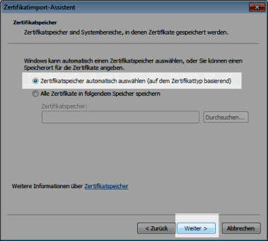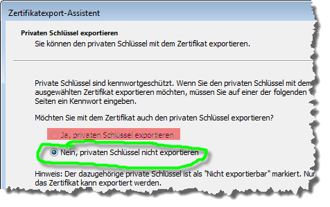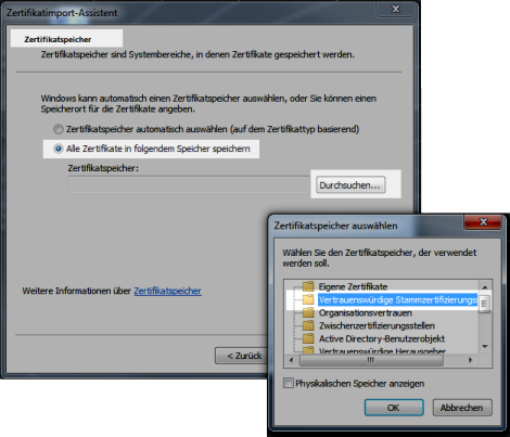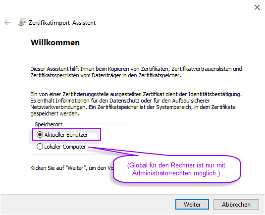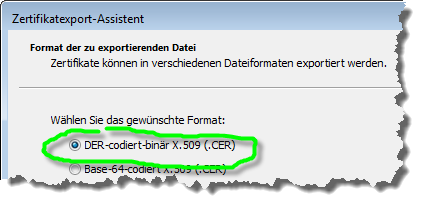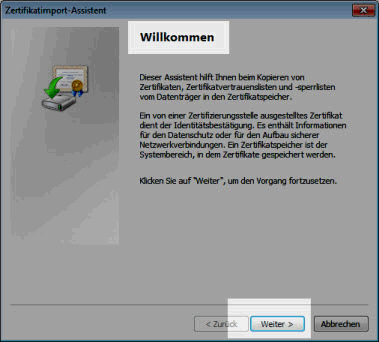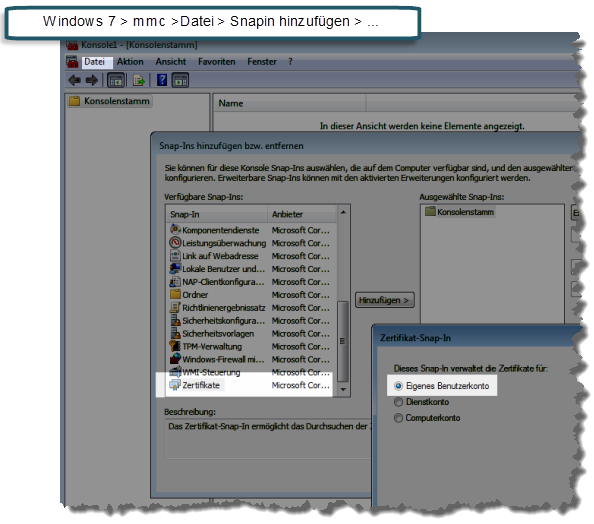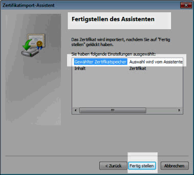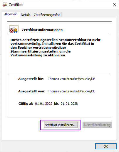 Nach dem vorherigen Abschnitt ist das Selfcert unter VB/Extras verfügbar.