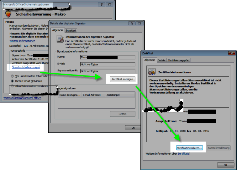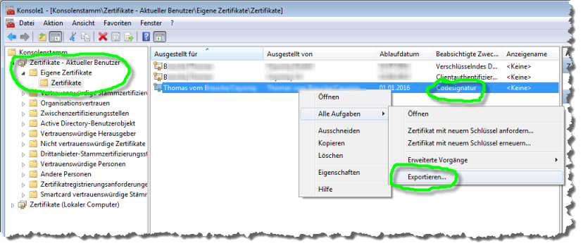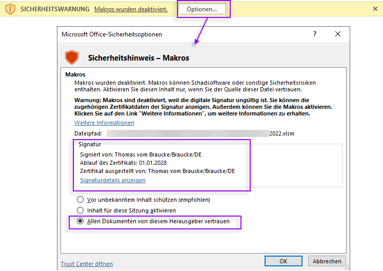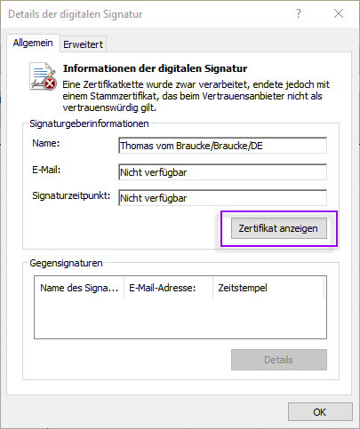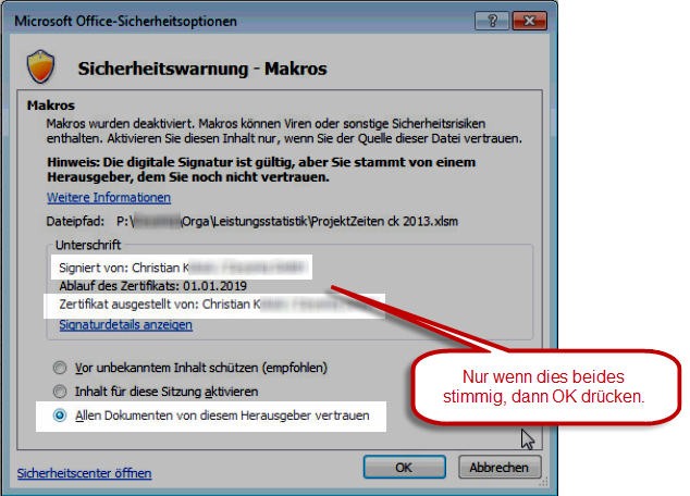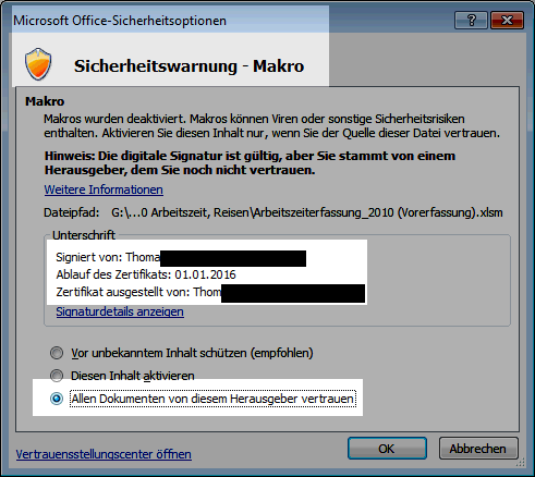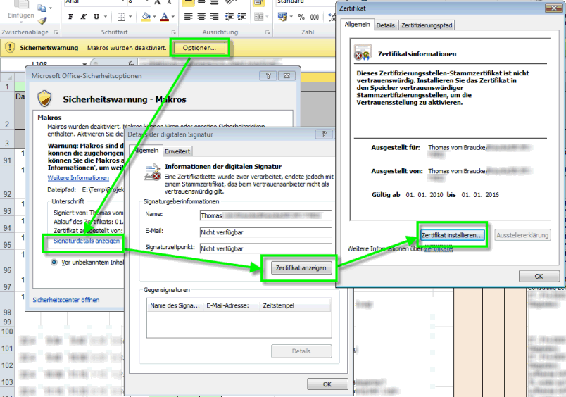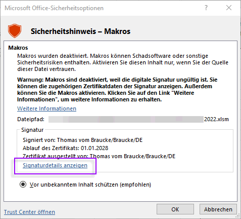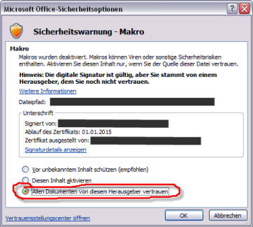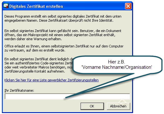 In VB dann per Extras > Digitale Signatur die zuvor erstellte auswählen und damit das VB-Projekt signieren.